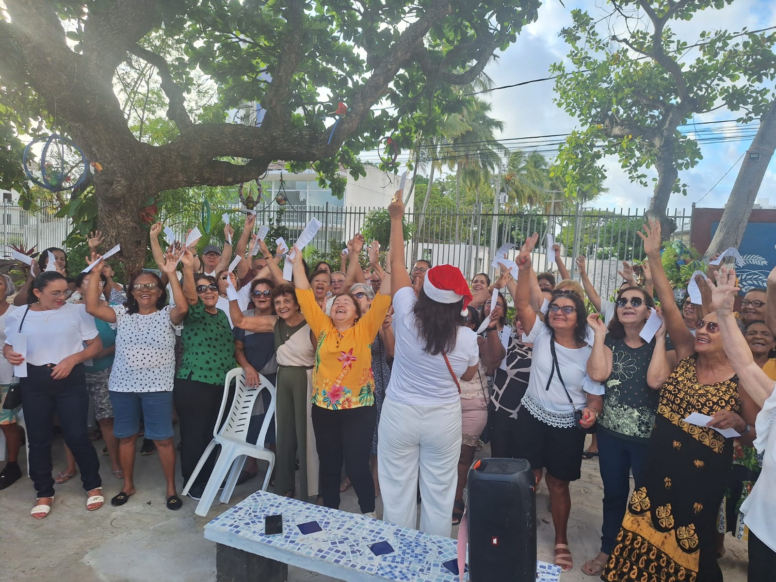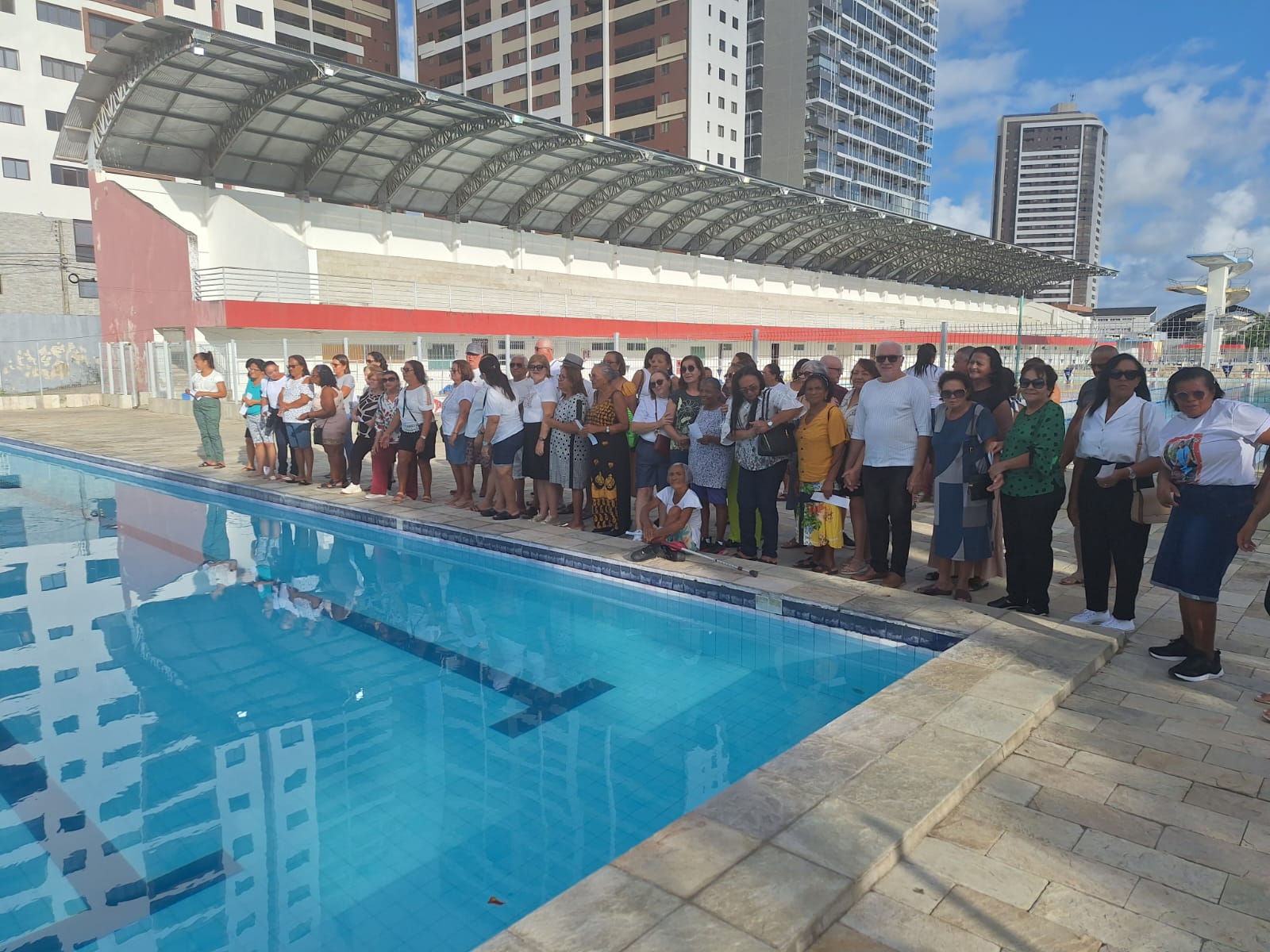 A confraternização da turma da manhã da hidroginástica da Vila Olímpica Parahyba foi marcada por momento de celebração a vida, união e alegria. A professora da turma Vera, e as organizadoras do evento, Maria da Paz e a Profa Lena Monteiro, falaram do valor imenso dessa confraternização, não só pelo o encontro festivo, mais pela oportunidade de fortalecer laços de amizade.